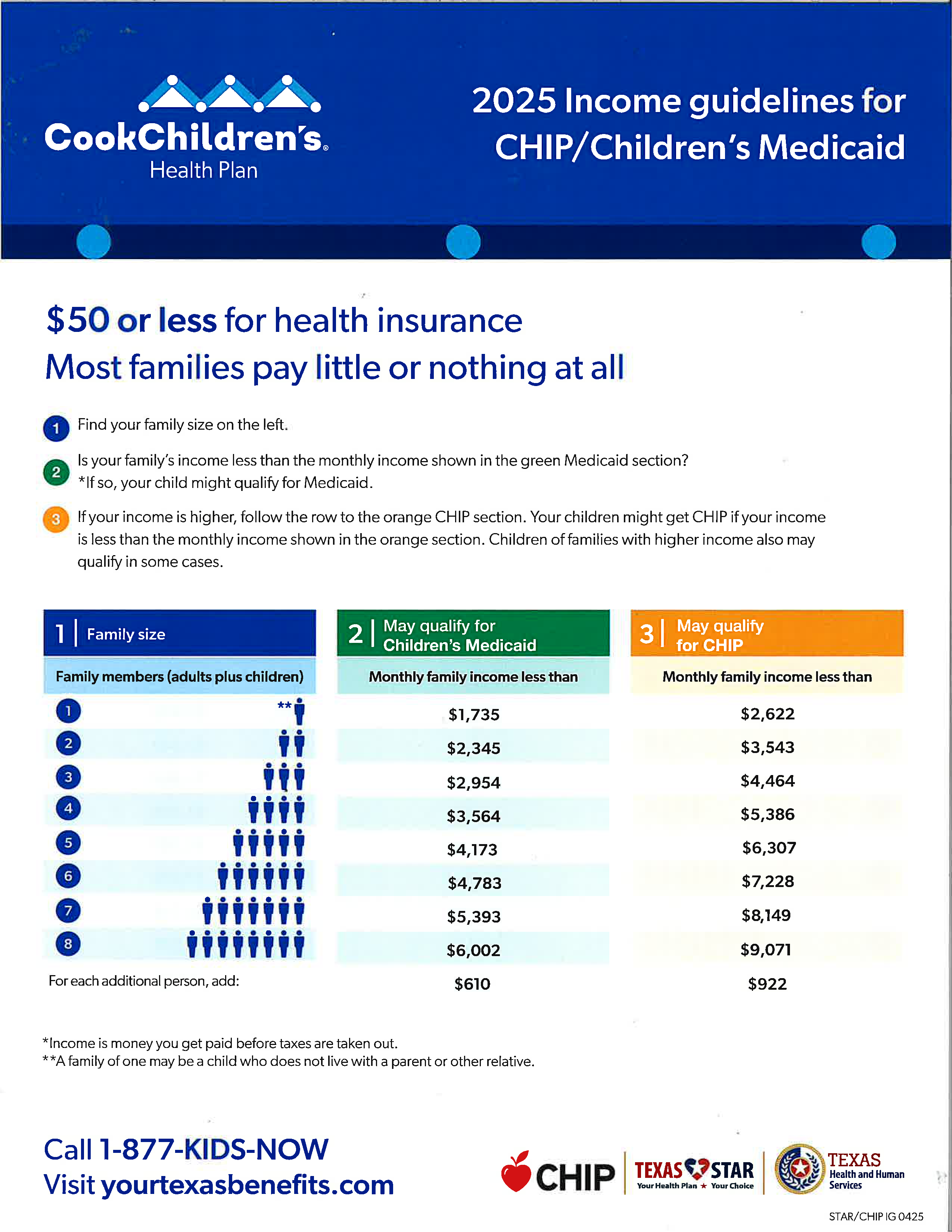 - Fill out the packet and write "Cook Children's Health Plan" as your health plan.